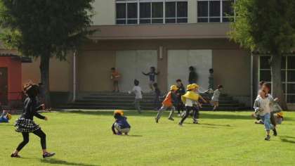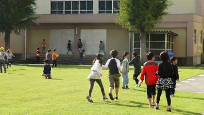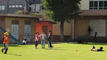 8日は真っ青に晴れ渡った空が気持ちのよい天気になりました。子どもたちは芝生の上でのびのびと楽しそうに遊んでいました。