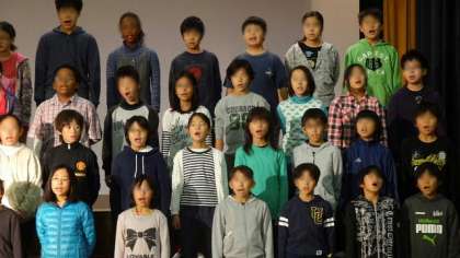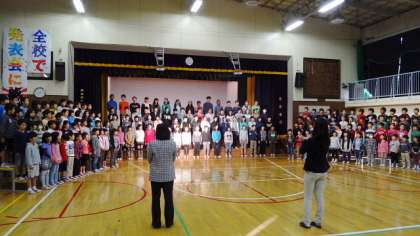 9日(金)朝の音楽集会は、希望っ子発表会(学芸会)で全校合唱する「いつだって!」を、本番同様のひな壇にのって歌いました。とてもいい表情で気持ちよさそうに歌っている子どもたちです。ぜひ本番をお楽しみに。