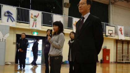 12日(月)、朝会は体育館で行いました。希望っ子発表会全校合唱、ひな壇の上に並ぶ練習をかねて行ったので、いつもとちがう雰囲気でした。校長講話では、希望っ子発表会の劇はクラス全員で目標をもって、みんなでつくりあげていきましょうという話をしました。また、世田谷区児童海外派遣から帰ってきた5年女子児童に、帰国のあいさつをしてもらいました。最後に、連合運動会で優れた成績をおさめた4人を紹介し、みんなで拍手をおくりました。