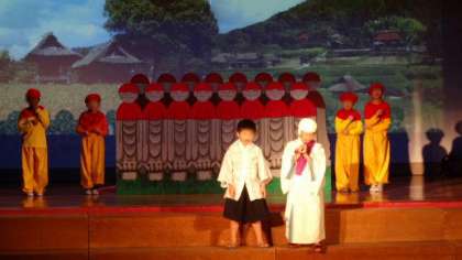 2年生の練習風景です。仕上がり具合も順調で、元気な2年生らしい劇になっています。ご期待下さい。
