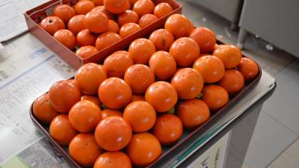 校庭の柿の実が食べ頃になりました。エコ活動で、牛乳パックやペットボトルキャップの回収に協力してくれた子に配っています。今がチャンスです。