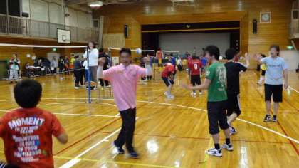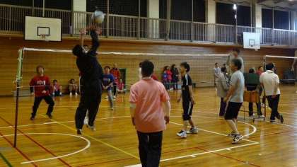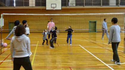 25日(日)午後、船橋希望中学校の体育館で、「お父さんのスポーツ大会」が開かれました。船橋希望中学校のおやじの会が近隣の学校に呼びかけて、ソフトバレーボールの対抗試合を行いました。本校も少数精鋭チームで参加し、6試合を戦いました。本気で練習を積んで出場したチームもあり、急造の本校チームの結果は・・・2勝1分け3敗という結果でしたが、参加の皆さんが精一杯がんばりました。前半終了の時に応援にかけつけてくださった保護者の方と子どもたちと一緒にお楽しみの場面もあり、楽しい会となりました。