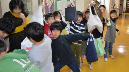 毎日中休みの時間には、職員室前の廊下で児童エコ委員会が、リサイクルコーナーを開いています。26日は大賑わい。牛乳パックやペットボトルキャップのリサイクル受付に行列ができました。エコスタンプカードに記録して、スタンプがたまると景品がもらえます。今日の景品は学校でとれたカキです。協力ありがとうございます。