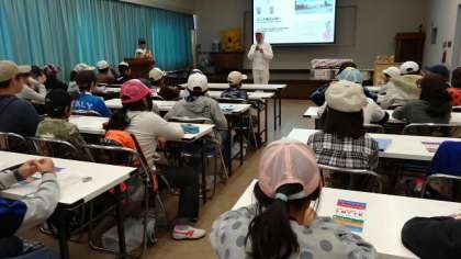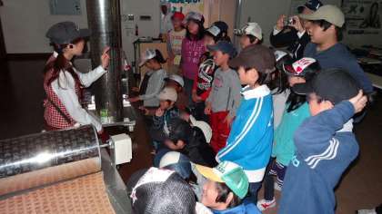 続いて向かったのは狭山市にある大手お菓子工場。工場に入るときに衛生管理のため持参した上履きに履き替え、さらに頭髪が落ちるのを防ぐため持参の帽子をかぶりました。この後、工場を出るまで帽子はかぶったままです。さすが、衛生管理がしっかりしているなあと思いました。会議室で工場や製品についての説明やビデオ映像を見て、工場について学びました。
