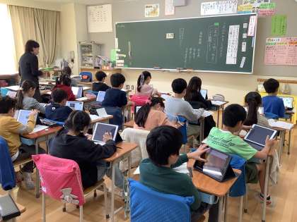 5時間目は、船橋希望学舎の先生方が来校して、全部のクラスの授業を見てくださいました。教室での学習や図工、音楽、体育など様々な学習の場面を見ていただきました。