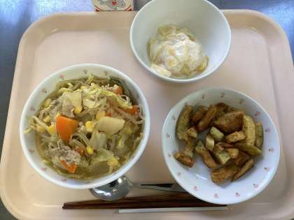 献立 みそラーメン 青のりポテト パインヨーグルト 牛乳