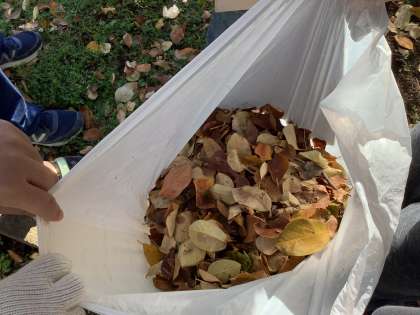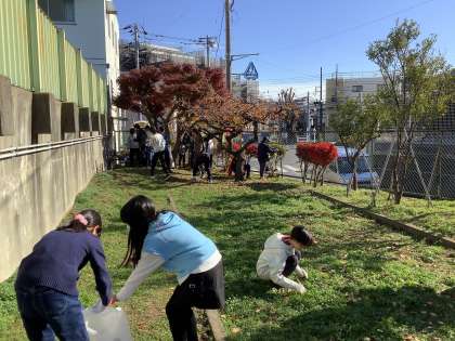 各学年や学級で、校舎の周りや屋上、校庭など清掃場所を決めてきれいにしています。今日は6年生がプールの周りの落ち葉を拾っていました。たくさんの落ち葉が集まりました。きれいになって気持ちが良いです。