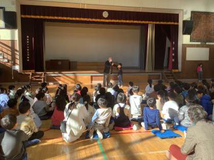 不審な人にはある程度の距離感を保つこと、大きな声を出すこと、どんな格好だったのか、特に靴を見ておくことが大切だということを知りました。子どもたちは、みんな前のめりになって話を聞くことができました。