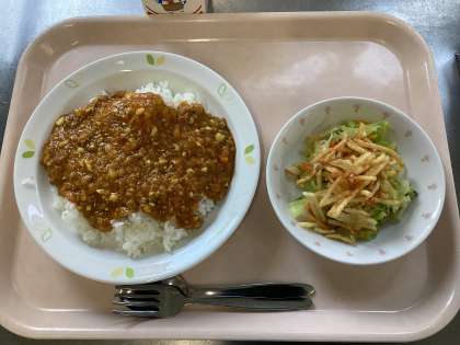 献立 大豆入りキーマカレーライス じゃがいものハニーサラダ 牛乳