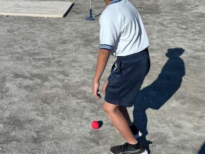 この日の学習は、高くフワッと跳ぶための5歩助走をするためには、どうしたら良いのか考え、スタートの位置に玉入れの玉を置いてどこから跳んだら良いのか何度も練習に取り組んでいました。また、タブレットを使って動画を撮り、自分のフォームを確認して次回の学習の課題を見付けていました。