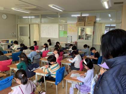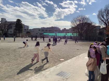 1年生が算数や生活科の学習をする様子や、休み時間の校庭遊びを見ました。「教室って憧れる」と話している子もいて、小学校への期待感が伝わってきました。