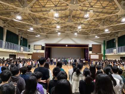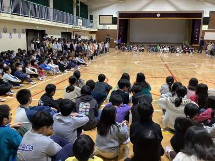 今日は「小さな世界」を歌いました。始めに3・4年、次に2・5年、最後に3・6年と2学年ずつ歌いました。パートが重なり合うところが綺麗に響き、歌い終わった学年に聞いている学年が自然に拍手を送っていました。最後は全校で歌って心が一つにまとまりました。