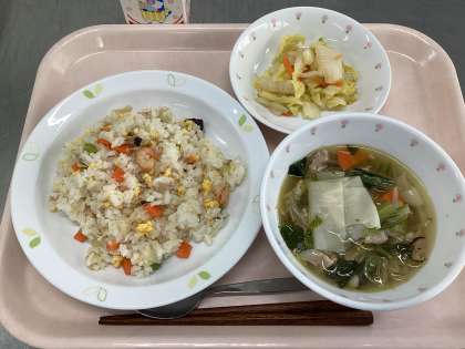 献立 チャーハン 辣白菜 ワンタンスープ 牛乳