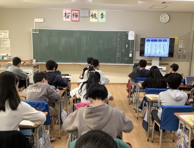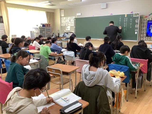 12日は学舎の日でした。船橋希望中学校の先生方が6年生の授業の様子を見学にいらっしゃいました。6年生も緊張した様子で真剣に学習に取り組んでいました。