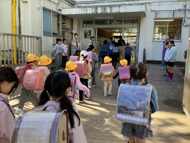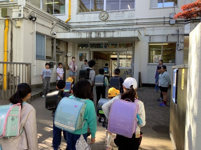 希望丘小のあいさつ週間が始まりました。今日は5年生が元気な声で「おはようございます」と、全校のみんなに挨拶をしていました。1年生もにこにこ笑顔で友達と仲良く登校していました。