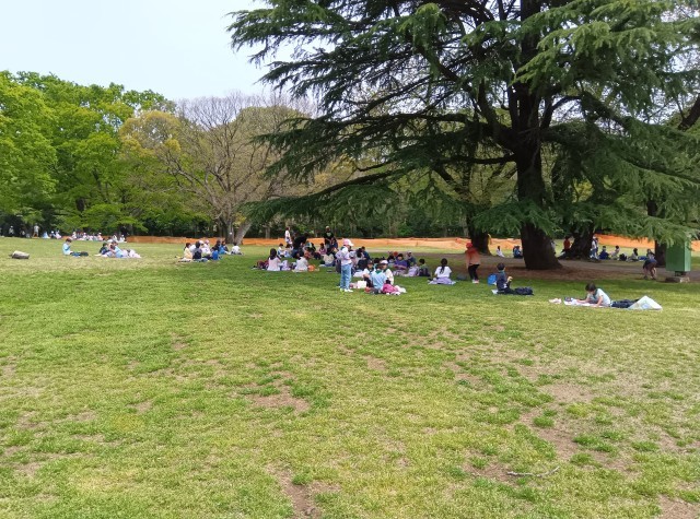 班のメンバーとたくさん遊び、次はお待ちかねのお弁当です。良い天気の中でみんなで楽しく食べます。「いただきます!」