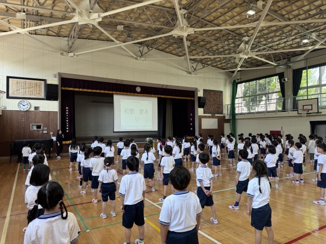 入学してから約1ヶ月が経ちました。4/30の音楽の学習では、校歌を歌いました。各クラスで練習したこともあり、1番と2番の歌詞を覚えることができていました。朝や給食等いろいろなところでの準備が早くなってきました。疲れも溜まったと思います。練習明けに元気な姿で会えるのを楽しみにしています。