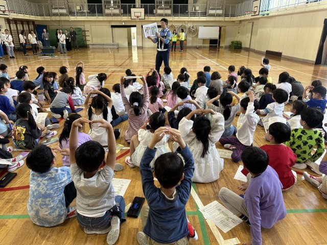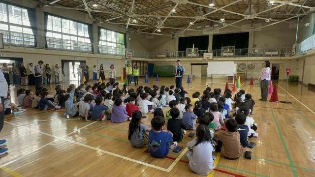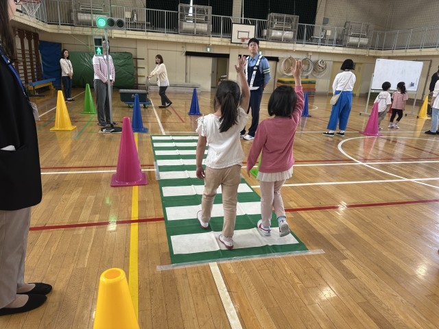 3校時に成城警察署の方をお招きして、交通安全教室を行いました。横断歩道を渡るときは右、左、右を見て手を挙げて渡ること、曲がり角や止まれの標識があるところは周りをよく見てから歩くことを学びました。実際に模擬信号や横断歩道のあるコースを歩き、安全に気を付けて上手に歩くことができました。最後にセーフティ検定や警察署の方のクイズに答え、認定証をもらうことができました。お忙しい中、保護者の方にもお手伝いいただきましてありがとうございました。