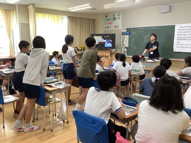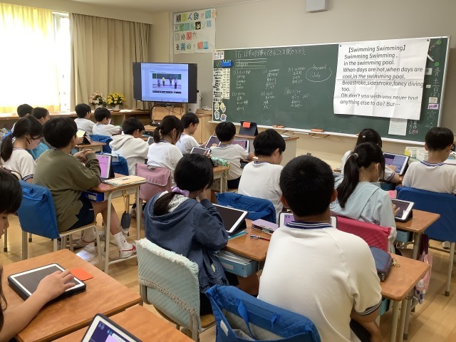 6年の外国語では、日本の季節ごとの行事について学習しています。今日は季節ごとの行事をテキストを見ながら聞き取りました。一人で、グループの友達と協力して、みんなで聞きました。花見やこどもの日、お月見などの行事は外国の方にとって興味があることを改めて感じていました。