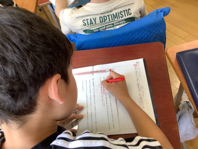 4年生の国語では説明文を読む学習が始まりました。今日は「思いやりのデザイン」を読みました。順がばらばらに並んでいる段落を元通りにする学習活動を通して、文章の組み立てを確かめ、筆者の伝えたいことを考えました。「話題の段落はどこだろう」「このように〜はまとめだね」と、今までの学習を活かして話し合うことができました。