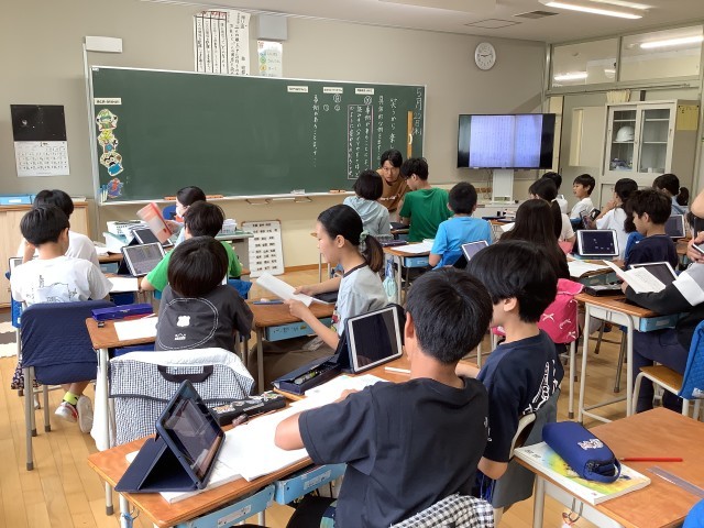 6年生の国語では説明文の学習が始まりました。今日は「笑うから楽しい」を読み、事例の役割について考えました。事例が書かれている文章と書かれていない文章を比べて、気付いたことを一人一人考えていきました。友達と交流して、事例があることで詳しく説明でき、意見に説得力が増すことを学びました。今日の学びを「時計の時間と心の時間」に活用していきます。