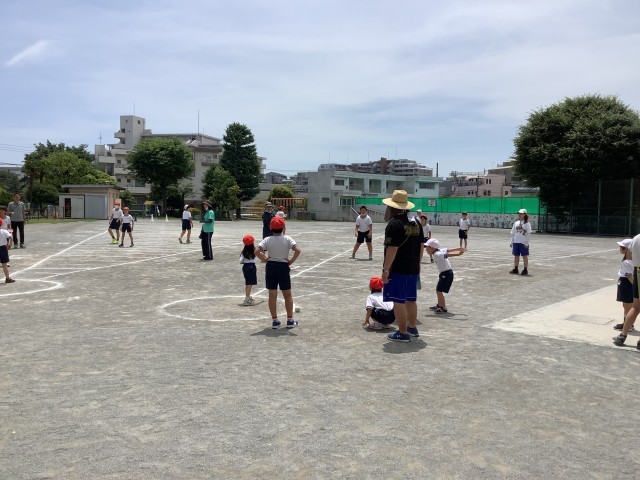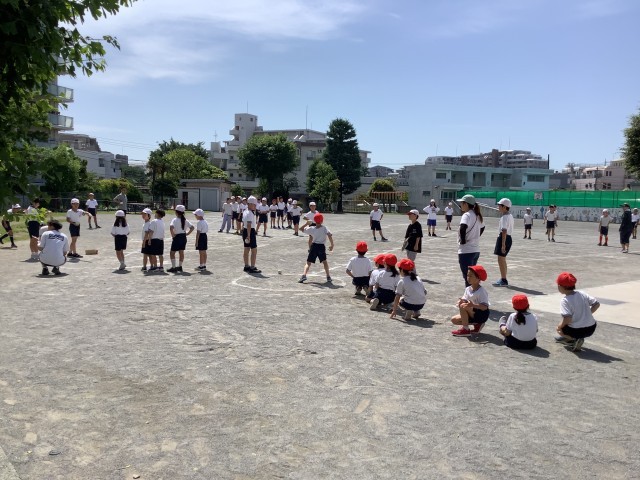 1時間目から体力テストをしています。体力テストは、1・6年、2・5年、3・4年のペア学年で昨日から実施しています。今日はソフトボール投げです。みんな遠くを見て投げていました。