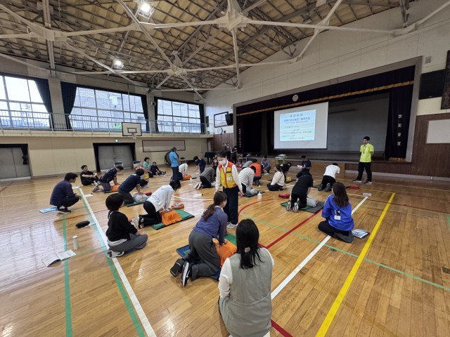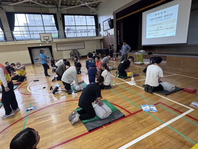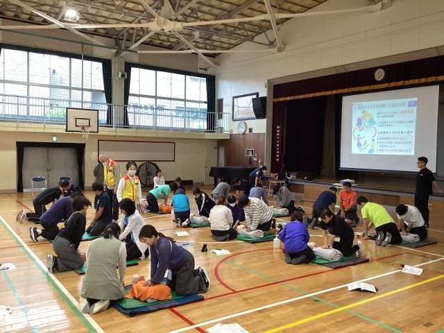 10日の午後、来週から始まる水泳指導へ向けて教職員向けに救命救急講習会がありました。心配蘇生(胸骨圧迫)のしかた、AEDを使った心配蘇生のしかたを行いました。無事故で行うことが一番ですが、万が一のときに向けて教職員全体で確認をしました。