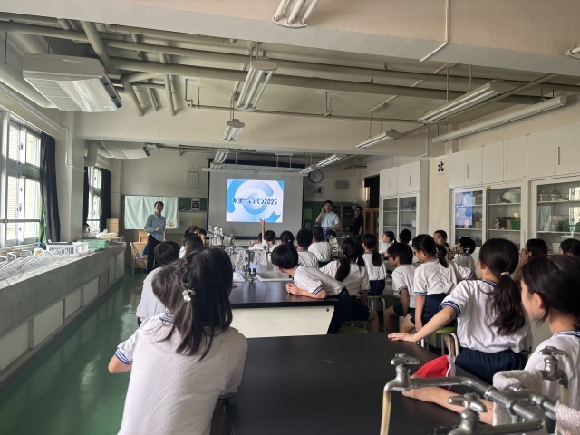4年生の社会科では、普段使っている水がどのようにして届けられているのかを学習しています。今日は水道局の方をお招きして水道キャラバンを実施しました。浄水場で使用している薬の実験や水道局の方々のお話を通して、水道水がどこからきているのかについて楽しく理解を深めました。