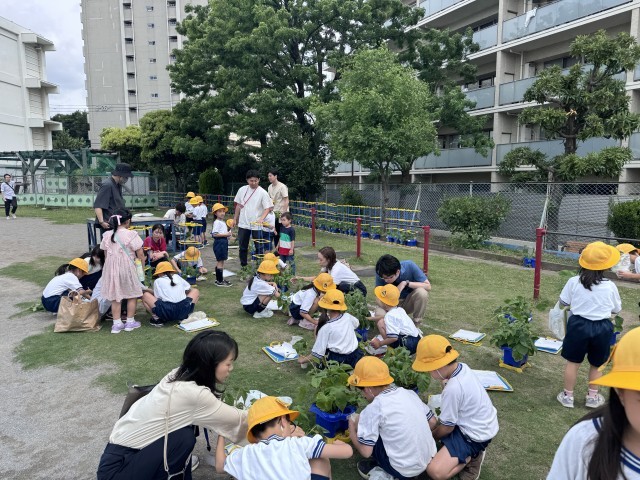 初めての学校公開、たくさんの方にご来校いただきありがとうございました。1年生の生活科の学習では、生長したあさがおの間引きをし、支柱を立てる作業をしました。支柱を立てた様子を観察カードに書きました。1ヶ月少々で生長した朝顔の様子を国語で学習したことを生かして書くことができました。持ち帰った朝顔はご家庭で育てていただけたら嬉しいです。