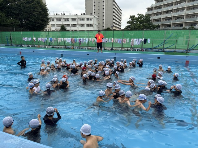 20日にプール開きを行いました。昨年度の経験を踏まえて、バディの仕方や水泳での注意事項などを確認しました。簡単な水慣れの他に伏し浮きやじゃんけん列車、音楽に合わせてダンスをして、楽しく活動することができました。保護者の皆様、道具、水泳カードのご用意ありがとうございます。今年度も安全に気を付けて、水泳指導を行っていきます。