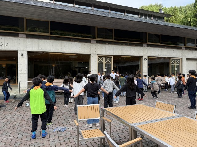 川場移動教室2日目です。朝の清々しい空気と川場村ならではの自然を感じながら、外で朝会をしました。朝の限られた時間内で素早く行動し、全員5分前には集まってスタートすることができました。子どもたちは、今日のハイキングが楽しみなようです!