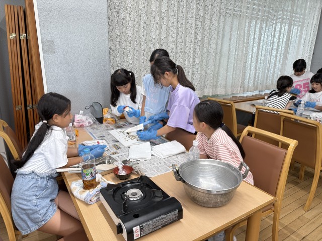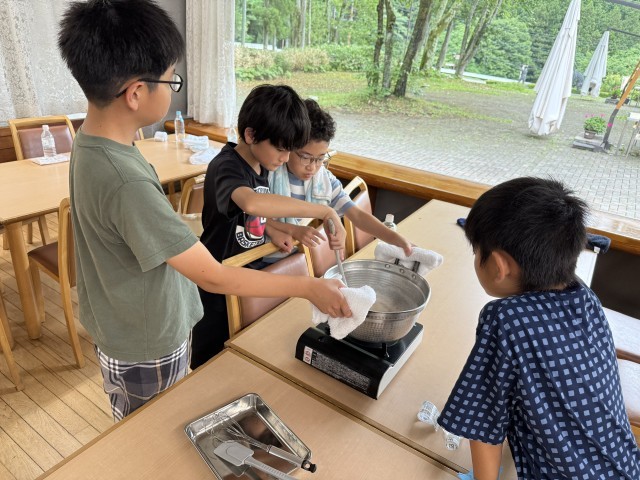 こんにゃく作りの体験をしました。「こんにゃく芋からどうやったら知ってるこんにゃくの形になるのだろう…」と、わくわくしながら班で協力して完成させることができました。最後は、川場村に住んでいる方からお話も聞くことができました。武尊山からの水で作られた雪ほたかというお米が美味しいことや、こんにゃくを作ろうと思った理由など、様々なことを教えていただきました。