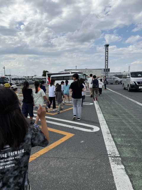 三芳パーキングエリアでトイレ休憩をしました。東京までもう少し。バスの中では各クラス映画鑑賞中です。