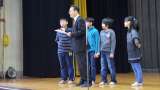 朝会、続いて区が主催して行っている「科学センター」に通い終了した4人の5・6年児...