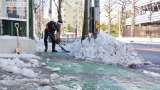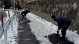 16日、明日子どもたちが登校してくるのに備えて、雪が柔らかいうちに警備員さんにも...