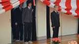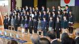 最後に会場の皆様にもご起立いただき、全員でまど・みちおさん作詞の校歌を声高らかに...