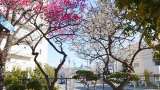 25日、希望丘小学校北側、道路沿いのソメイヨシノの木が開花しました。