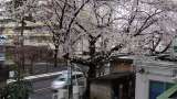 校庭の南側の本村公園の桜も見頃になっています。ところがどんよりした雲と横殴りの雨...