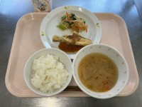 ◆献立◆ミルクパン白身魚のエスカベージュフレンチサラダ野菜スープ牛乳