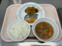 ◆献立◆ごはんさばのゆず味噌かけかぼちゃのそぼろ煮けんちん汁牛乳