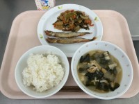 ◆献立◆ごはんししゃものカレー揚げくきわかめのきんぴらじゃがいもとわかめのみそ汁...