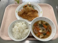 ◆献立◆ごはん(新潟県産「こしひかり」)たれかつからし和えのっぺい汁牛乳