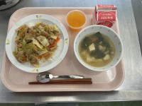 🔸献立🔸・回鍋肉丼・わかめスープ・つぶつぶみかんゼリー