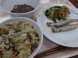 ☆献立☆ 五目ごはん 牛乳 焼きししゃも おひたし あん餅 ☆食材☆ 鶏肉・・...