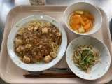 献立 麻婆豆腐焼きそば 中華あえ フルーツポンチ 牛乳