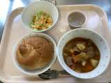 献立 胚芽パン グラーシュ クラウトサラート カフェオーレゼリー 牛乳