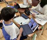 4月に入学する近隣の保育園の子どもたちが、小学校見学に来ました。 1年生が算数や...