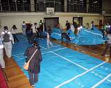 夕食後、体育館に宿泊のための避難所設営をしました。区割りがしてあるブルーシートを...