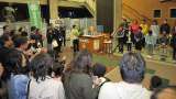 最後に集まった皆さんが一同に会し、地震発生時の対応や避難所運営のことについて意見...