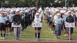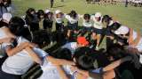 26日、明日に予定されている連合運動会に向けて、6年生が団体競技長なわとびの最後...